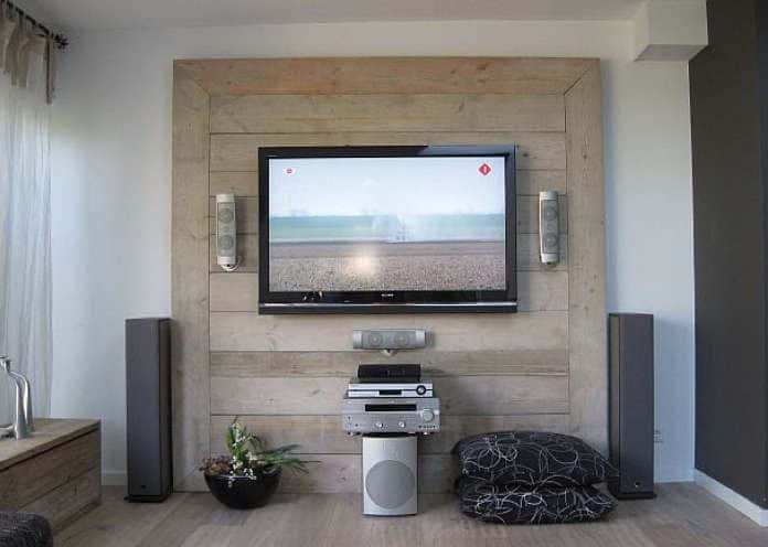 Otra alternativa es desmontar los tablones para crear un panel decorativo. Corta las piezas en diferentes tamaños y colócalas en la pared uno al lado del otro, luego añade las piezas de soporte aéreo del televisor y listo. También puedes combinar ideas y hacer tanto el panel como una pequeña mesa que te permitan crear un maravilloso punto focal en el lugar.