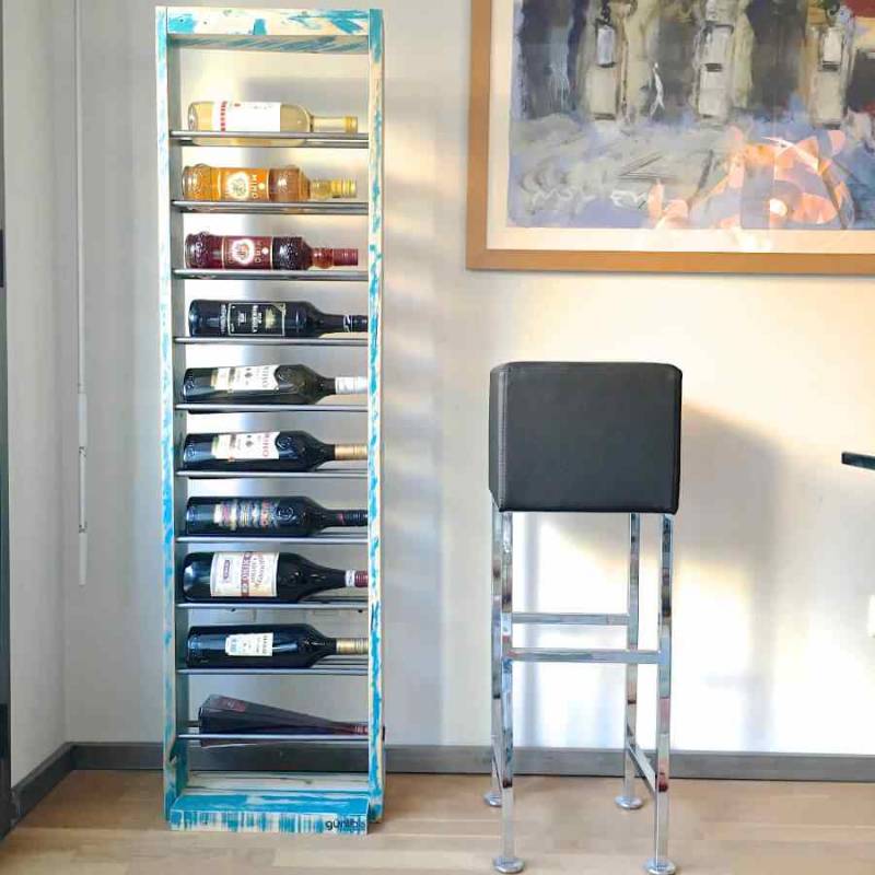 Si quieres hacer este mueble con palets, lo primero que tienes que hacer es lijar, pintar y barnizar para, después, colgar el palet en la pared procurando que la parte de abajo sea la que se muestre. Colócalos en vertical para que, así, estos trozos de madera puedan usarse como prácticos estantes. ¡Y listo!